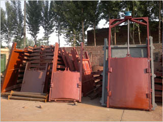 門體一般采用面板與加強肋的結構,面板可做平面或拱形。門體一般整體鑄造和機加工,但尺寸較大的可采用分塊組成式。門體上一般采用整體式金屬止水,兼作支承滑塊,金屬止水用同材料制作的沉頭螺釘緊固在門體上,螺釘頭部與止水工作面一起精加工,一些尺寸較大的也可“p”形橡皮止水。